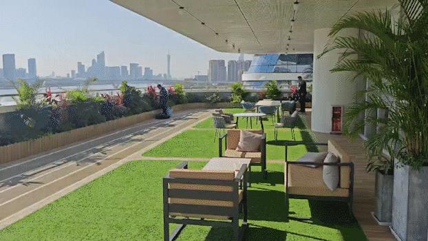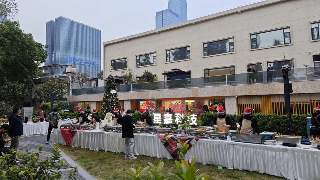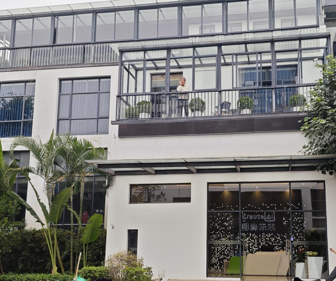 一方面,星嘉的辦公面積不小,佔了羊城創意產業園裏的一個獨棟辦公樓,樓西面、北面都有星嘉logo指示牌;另一方面,星嘉的樓東側挨着有湖有樹的休息區,環境也相當不錯。