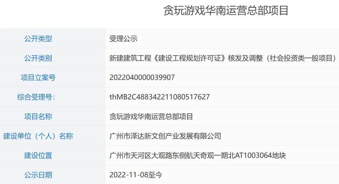 貪玩遊戲先前也在大觀路拿了塊地,建設自己的華南運營總部。先有網易總部,後有百奧、貪玩遊戲這兩個同行鄰居,估計到時候天河智慧城的遊戲人數量還能再翻一番。