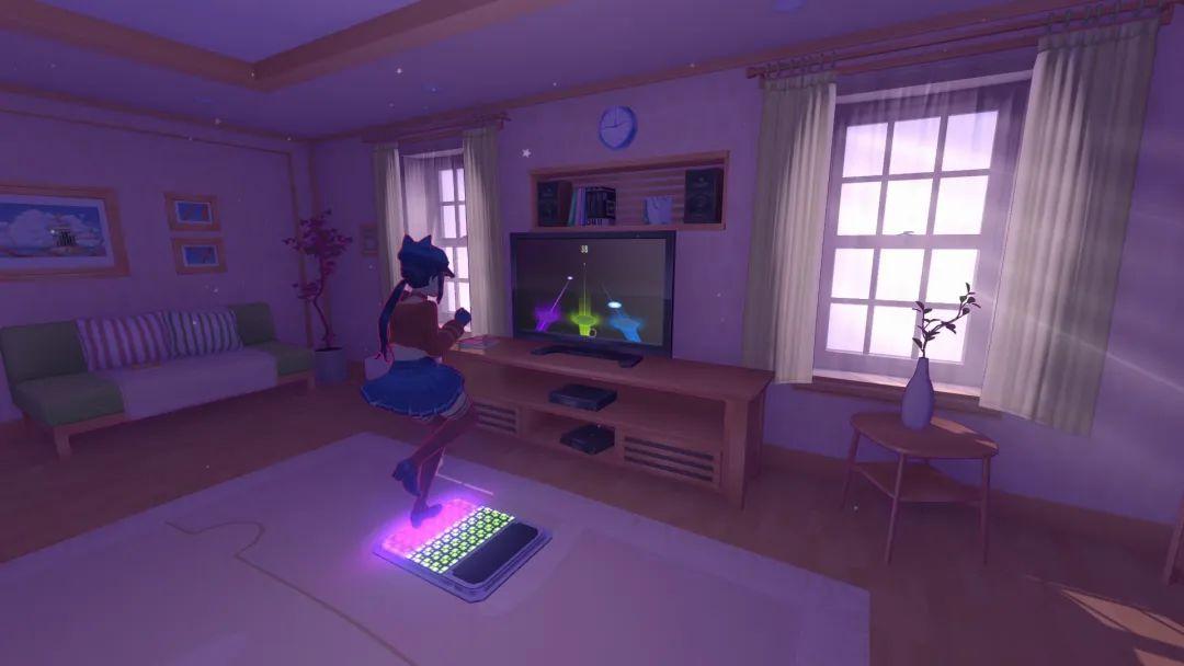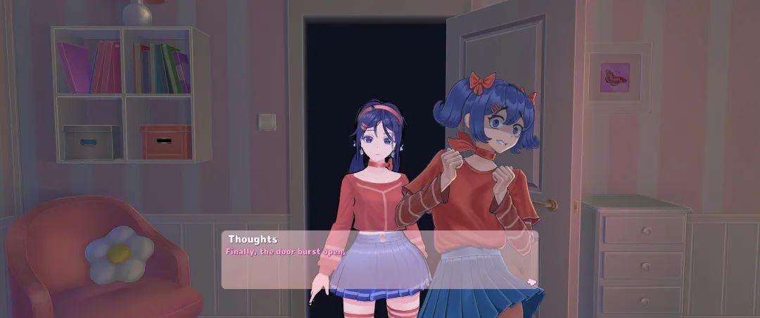 最後,遊戲的演出效果同樣突出。一些轉場很驚豔,比如你被拖入一個2D的galgame世界,卻在中途被3D的瘋狂米塔入侵;逃走後,你又突然發現自己進入了宅米塔(米拉)的世界,原來剛纔進入的galgame,就是她正在屏幕上玩的遊戲……