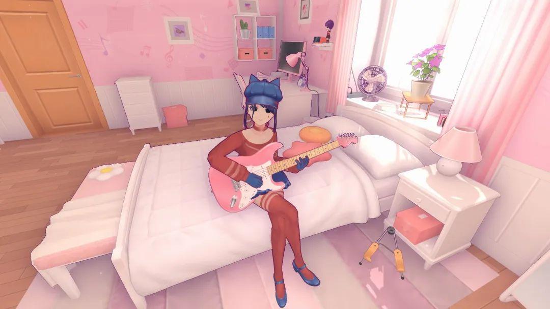 然後,各種米塔的動作細節拉滿。比如一個米塔因爲戴着帽子和手套,所以叫“帽子米塔”,她會用很萌的神情一路緊緊跟隨你,當你用鼠標搖頭或點頭,她也會跟着你學,而當她彈吉他時,你會發現指法和演奏是對上的。