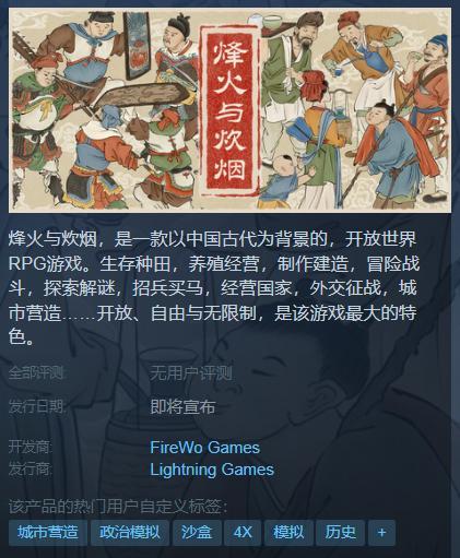 2月12日《烽火與炊煙》遊戲官方將在B站開啓直播,展示更多遊戲內容。