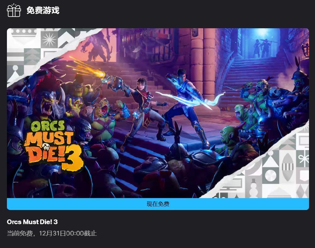 Epic遊戲商城今天給大夥送了動作塔防遊戲《獸人必須死3》,感興趣的朋友不要錯過。