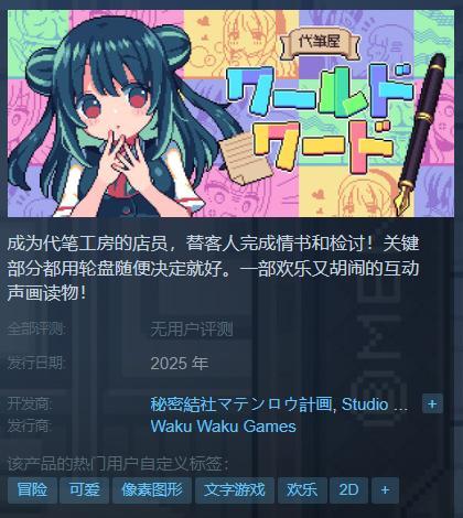 像素風文字遊戲《萬言堂代筆工房》將於2025年在Steam推出,暫時僅支持日文。