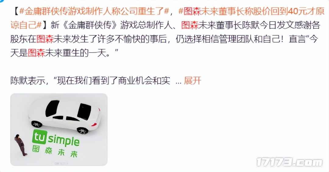 提到河洛工作室,我們就不得不說一下最近武俠遊戲圈的大新聞,一家原名圖森未來做智能汽車,現在改名成CreateAI的大公司從河洛工作室那邊拿到了版權,要做新《金庸羣俠傳》了。
