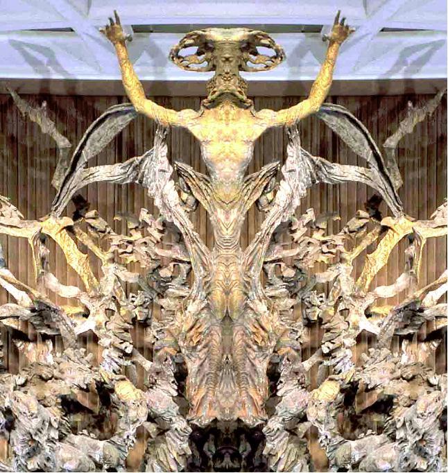 還有人認爲,這雕塑實際上是一個祕密崇拜巴風特的藝術品,也就是那個著名的羊頭惡魔,總是出現在各種黑金屬專輯封面上和《劍風傳奇》裏。因爲他們覺得把這個雕塑,從某處斷開,與自身的倒影拼接時,看着就是一個巴風特的造型。