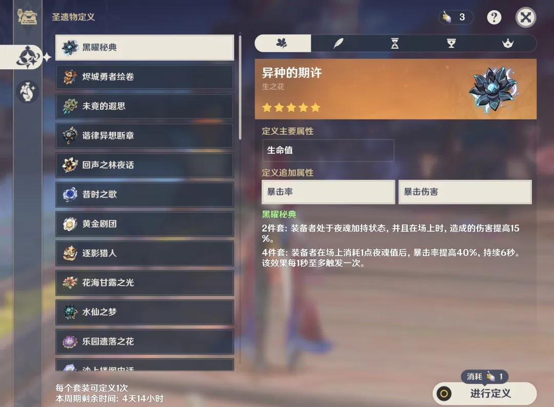 還有最令人慾仙欲死的聖遺物:爲了讓角色畢業,以前我只能相信概率和運氣,同樣的副本打到吐,卻至今沒有任何一個套裝的雙暴雷傷杯。而現在,每個版本都可以通過強化聖遺物,獲得自選部位、次條的機會,快速補上短板。