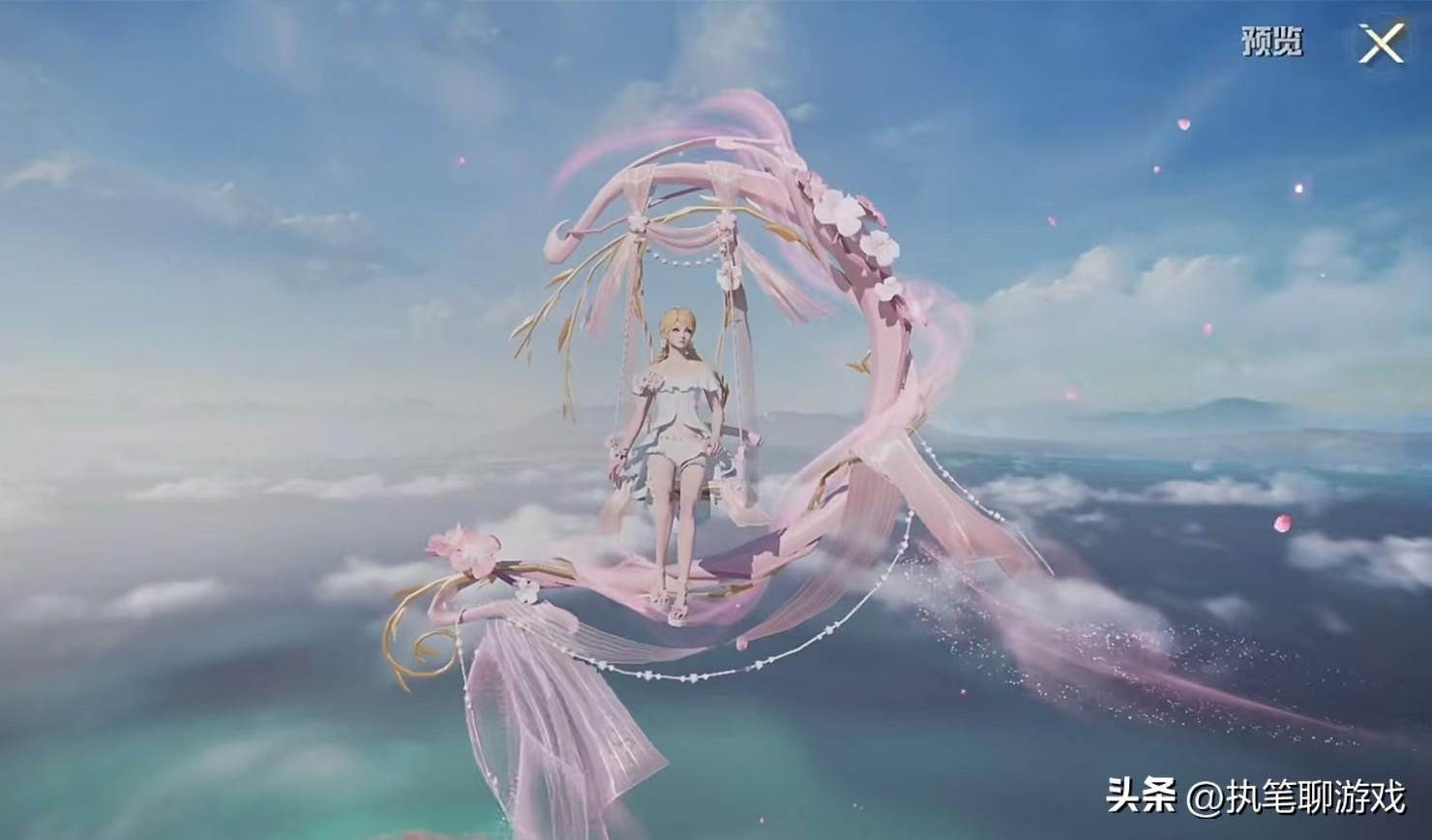 反倒是飛行器還算馬馬虎虎,這種“乘坐彎月”的造型雖然在《和平精英》中出現過不少,但是粉色薄紗的元素設計,天哥覺得還是蠻新穎的。