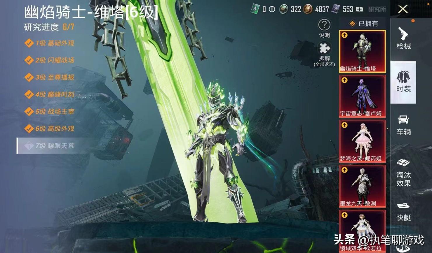 首先我們來說等級,天哥覺得其實沒必要追求7級,畢竟出生島“天幕”也就那麼一回事兒,點券又不是大風颳來的,最合理的升級方案自然是6級即可,擁有高級外觀以及雙形態,平日裏“無損拆解”用於紅裝升級,算是大多數玩家的最佳選擇。