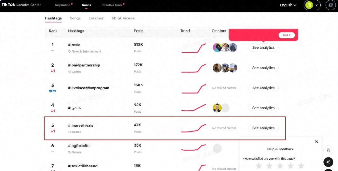 比如,TikTok是活躍且巨大的流量池,在發酵熱點方面有天然優勢。Youdao Ads爲《漫威爭鋒》在TikTok上策劃的玩法更強調“互動”。除遊戲垂類達人外,IP粉絲、cosplay、劇情泛娛樂類達人也上演多個“整活”現場,帶動遊戲曝光和話題互動參與。截止12月10日,《漫威爭鋒》通過Youdao Ads合作博主達到2970W總曝光量,爆量9個博主,助力#marvelrivals 在Tiktok全球話題榜TOP 5。