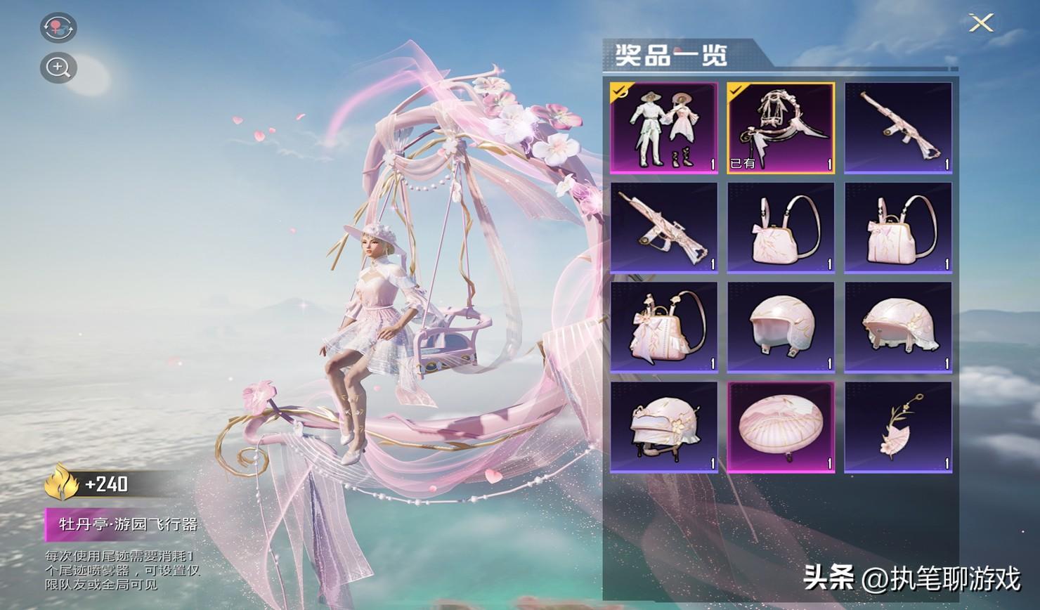 以此次的“牡丹亭·遊園”爲例,屬於幸運轉盤中的“三粉小轉盤”,顧名思義,擁有粉色等級的套裝、飛行器、降落傘,如果12輪抽獎保底的話,通常要850左右的點券,一些運氣不錯的天選之子則是1個648~