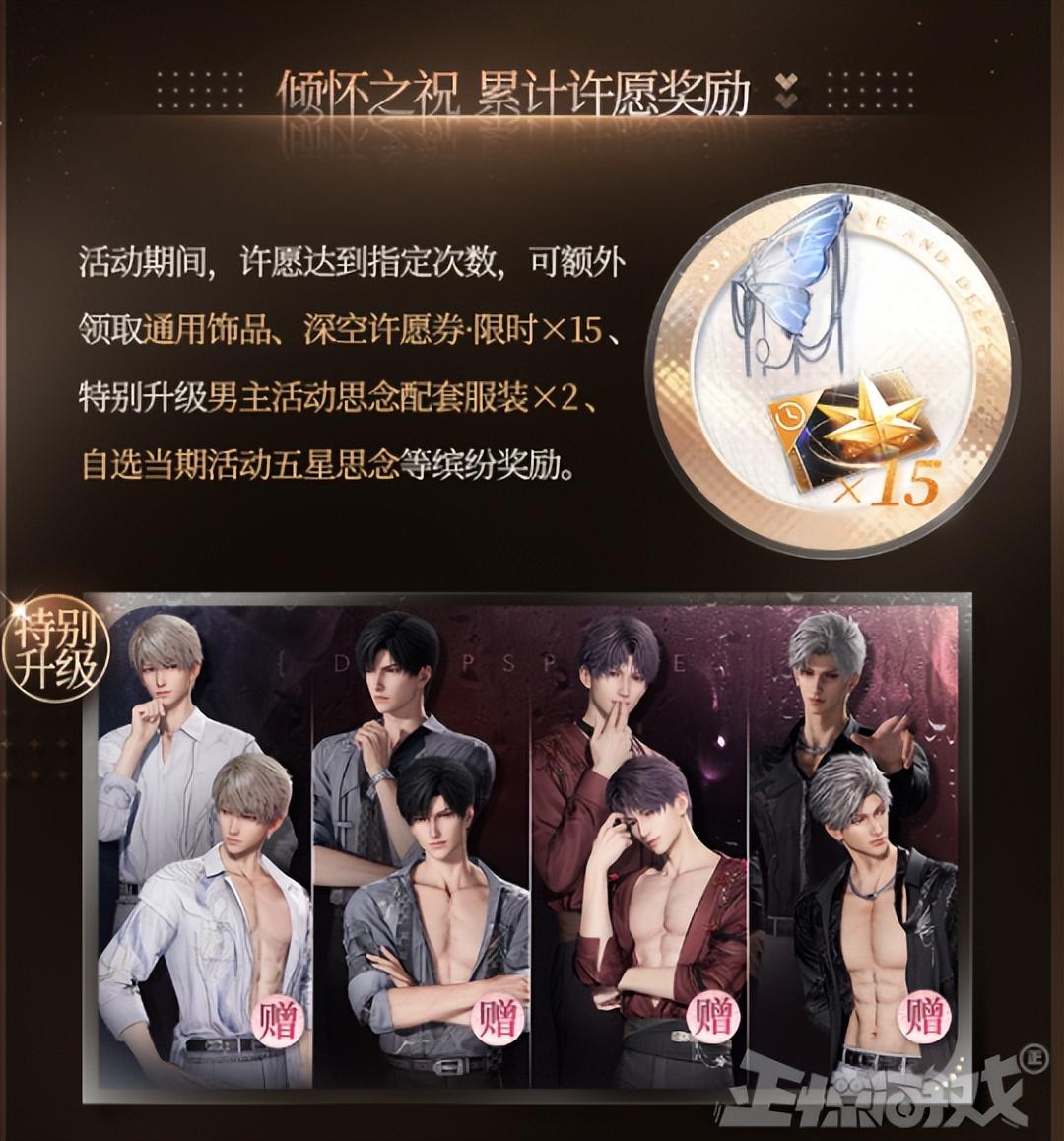 《戀與深空》3.0年度版本“萬象遇你”已於2024年12月31日更新後正式上線。玩家參與活動有機會贏得自選五星和四星思念以及疊疊樂系列的限定四星思念*4等豐厚獎品,還可通過十連和1500鑽等獲取“他的特別短信”等回饋。累計簽到15天可領取豪華獎勵。