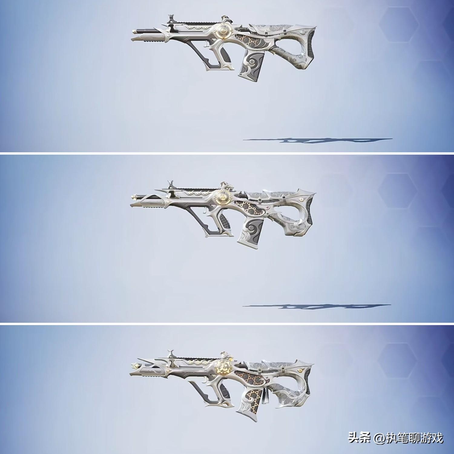 7級槍綽號“掛槍”,AUG的字母反過來就是GUA,所以有這樣的綽號,基礎、進階、高階的外觀變化並不大,只能說是中規中矩吧~