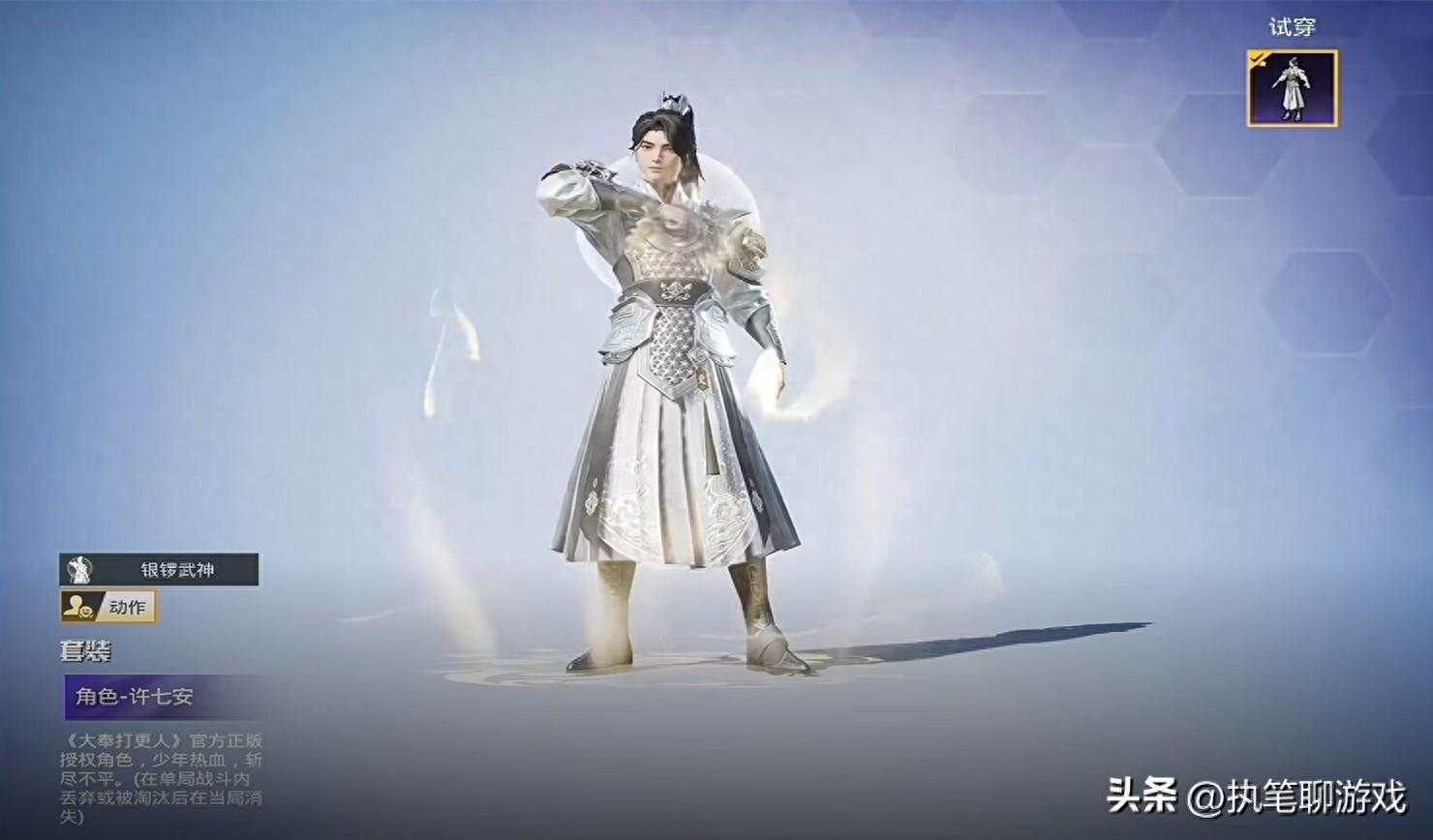 如今在《和平精英》裏以聯名的方式出現,自然是大家熟悉的角色,銀色的盔甲褶褶生輝,但與印象裏的打更人裝扮好像不是那麼回事兒,起碼沒有達到個人想象中的那個高度。