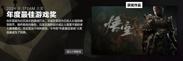 《黑神話悟空》獲得Steam年度遊戲大獎,遊戲DLC還在醞釀階段。年初公佈的Steam大獎中,《黑神話悟空》成最大贏家,一舉囊括“年度最佳遊戲”、“縱使手殘仍大愛獎”和“傑出劇情遊戲獎”等三項大獎。而在IGN舉辦的“2024年度玩家選擇”大賽中,《黑神話悟空》同樣獲得年度最佳,第二名是另一款國產遊戲《漫威爭鋒》。