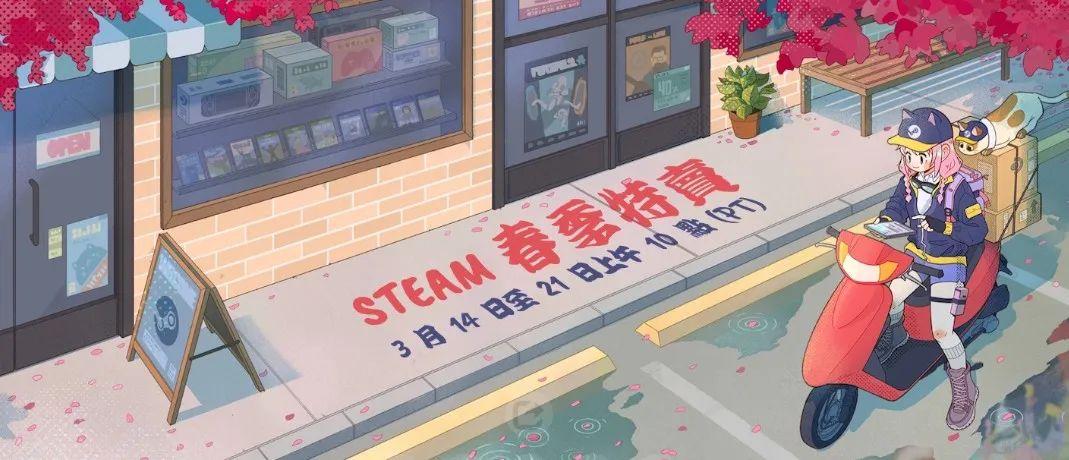 直到在2024年3月的春季特賣上,首頁橫幅畫風突變:一位送貨員少女騎着紅色機車,停在一家遊戲店前,機車後的貨物上還蹲着一隻三花貓,樹葉隨風落到街邊的積水上泛起漣漪...