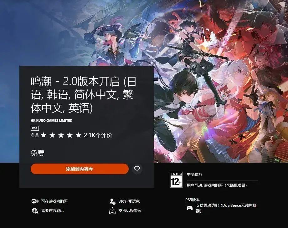 鳴潮2.0,同時正式登陸PS5平臺。1月2日,《鳴潮》2.0版本「致緘默以歡歌」正式上線,引入了歐洲藝術風格的新地圖黎那汐塔。同一天,遊戲也已經正式登陸PS5平臺,上線首日獲得了4.8分(滿分5分)的玩家評分。根據庫洛內部的製作人寄語,《鳴潮》2.0上線後,達成了上線以來新版本單日營收新高。