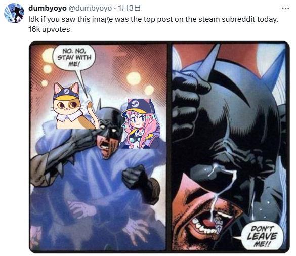 從結果來看,Nemu成功地將這份面對遊戲的純粹情感具象化了,通過送貨員少女的形象傳遞給了更多人。在Nemu告別推文的評論區,玩家紛紛表達不捨,猛男落淚,誇獎Steam Delivery Girl是他們今年用Steam最大的驚喜。