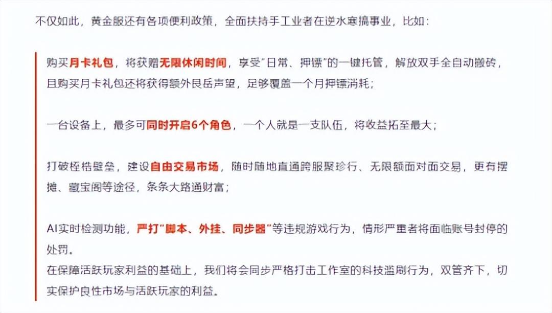搬磚方面更是噱頭拉滿,《雷火承諾:保護所有手動搬磚玩家》《用實際行動鼓勵手動搬磚,雷火嚴選創業指南發佈》等官方公告,嚴正表達了黃金服對於邊玩遊戲邊搞事業玩家的鼓勵與扶持。