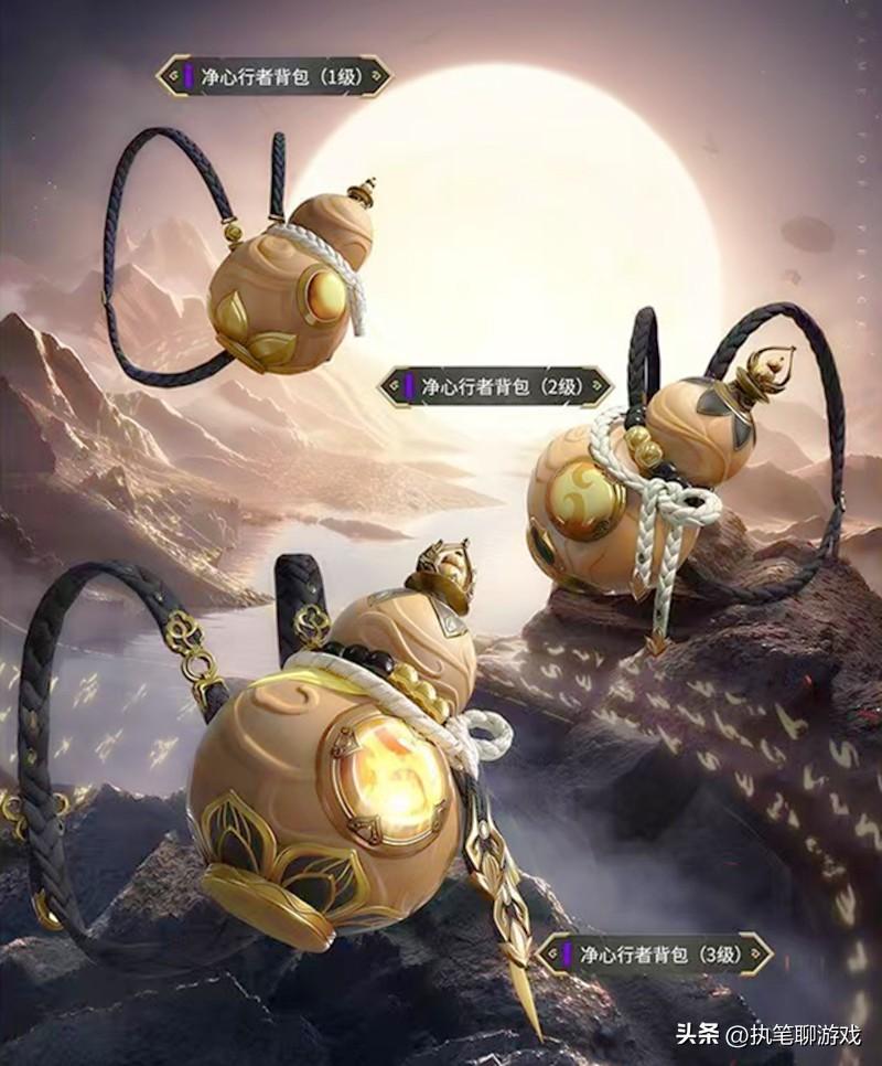最讓天哥眼前一亮的則是葫蘆外形的揹包,絕對是古風裝扮的DIY極品道具了,不僅外形酷炫,而且在葫蘆的中間還有動態火焰特效,背在身上的第一視角也是又颯又帥。
