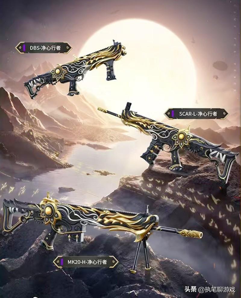 雖然是“小轉盤”,但皮膚種類同樣一應俱全,其中的3個槍皮分別是DBS、ScarL、MK20-H,從外觀來看的話,天哥覺得用“黑金”來總結最爲恰當,整體中規中矩吧~