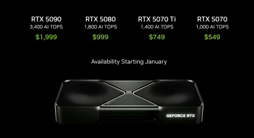 英偉達CEO黃仁勳宣佈,新的GeForce GPU將從1月份開始提供,價格如下: