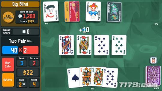 遊戲的操作與德州撲克類似,玩家按照發牌員給出的基本牌搭配出同花順、順子、對子等得分組合,只要最終結算分數高於莊家,你就能得到賭桌上的獎金。與普通德州撲克不同的是,在《balatro》中玩家可以使用各種奇奇怪怪的卡牌來魔改自己的手牌,將某些特定卡牌組合到一起後就會獲得爆炸的化學反應。
