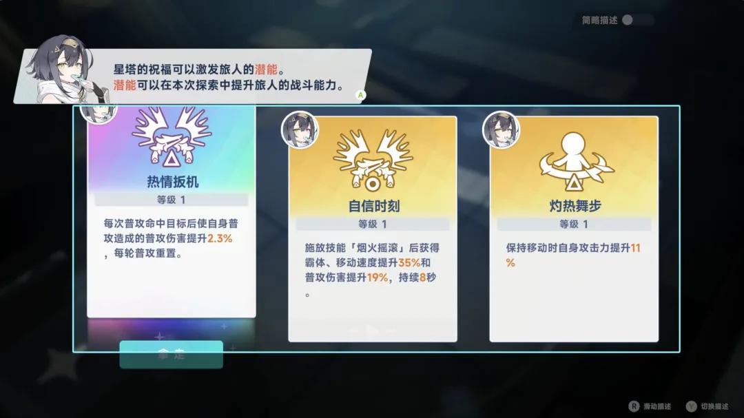 從表面上看,玩家每清完一層,就可以獲得3種角色潛能選項,它們能夠強化陣容的各種細節屬性或數值,玩家可以從中選取1張裝備。除此之外,玩家在進入戰鬥前還需要配備3張祕紋,並通過在星塔中的戰鬥、商店和隨機事件中獲得不同顏色的音符,以激活祕紋中的各項增強屬性,讓整體隊伍不斷獲得成長。