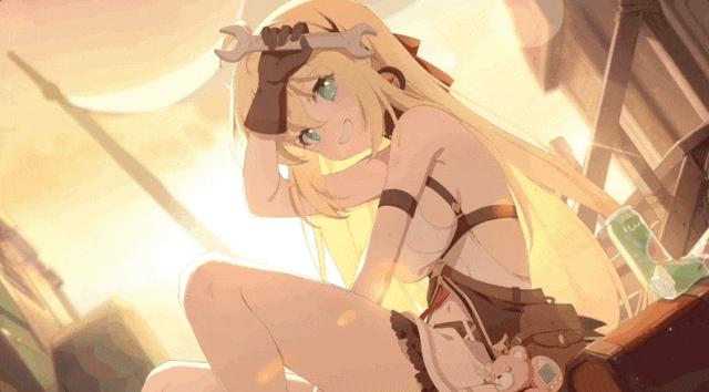 塵沙則是一個經典的元氣笨蛋角色,並且還有喫貨的標籤,屬於更加經典的萌要素組合。但在這之上,塵沙還延展出了另一種萌點——她靠着「俺尋思這能行」的直覺,居然能把星塔中撿來的一大堆零部件,組裝成一輛完整的汽車。