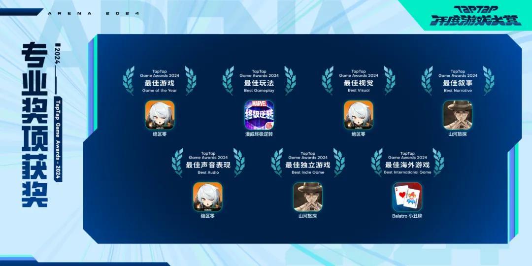 本屆大賞共設立了14個獎項,其中7個專業獎項由TapTap邀請的百人評審團進行投票。