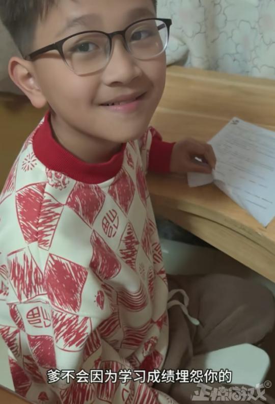 這位老父親不會因爲學習成績就去埋怨兒子不努力,也不會在學習方面給到太多的壓力。