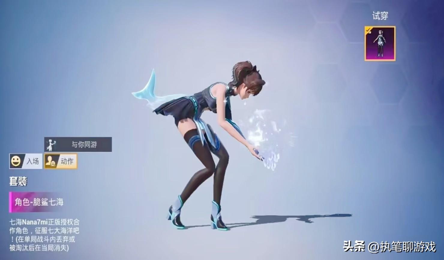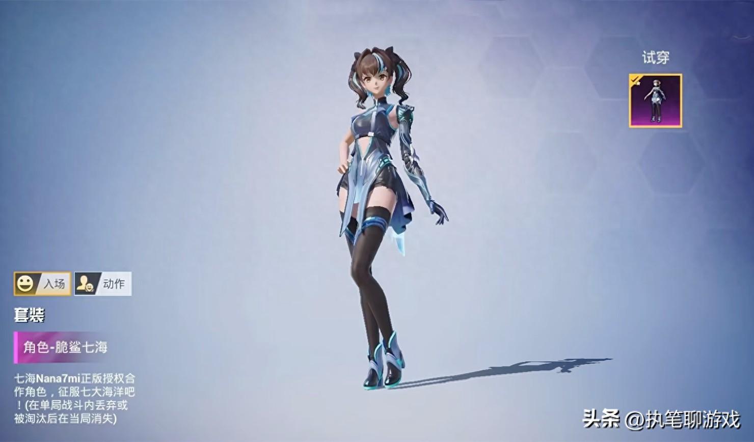 如圖所示,“脆鯊七海”屬於七海Nana7mi的授權合作角色,光子在文案裏寫着“征服七大海洋吧”,但並沒有對該角色有太多的描述。