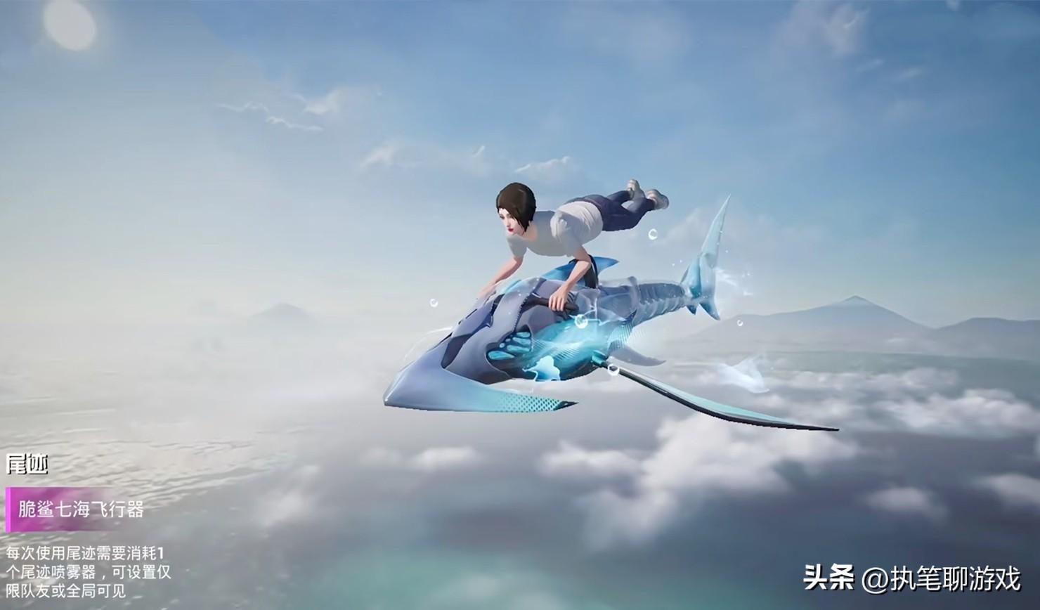 首先我們來說飛行器,外觀就是一條鯊魚的模樣,只是加入了許多科技元素,看起來就像是動漫裏的鯊魚似的,不僅是由機械組成,而且還泛着幽幽的藍光,看起來科技感十足。