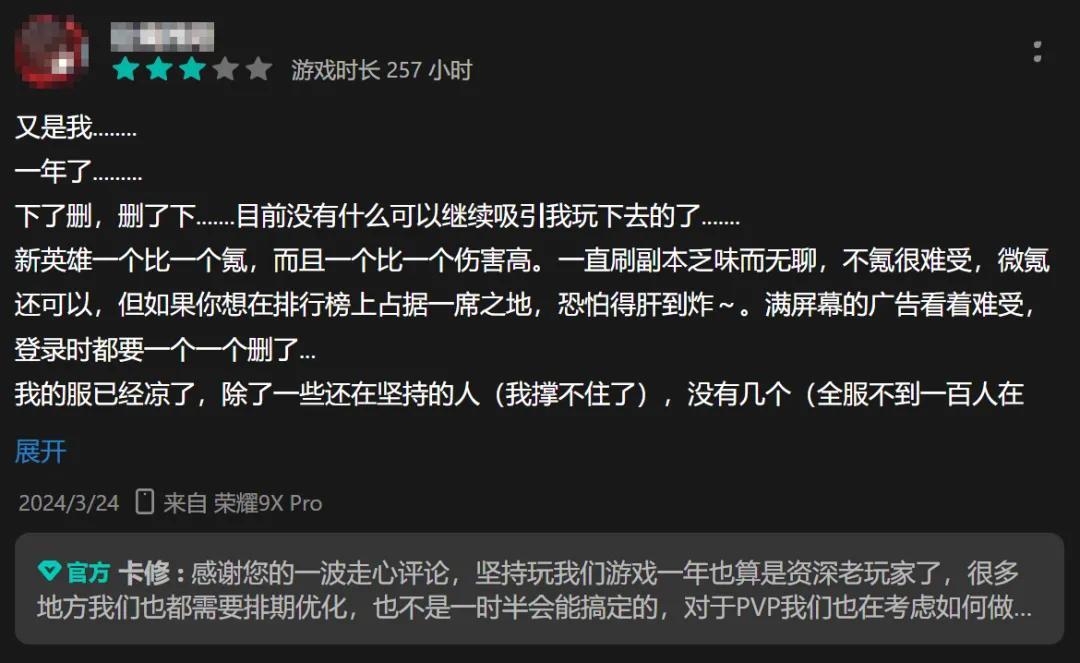 葡萄君:《火3》上線之後,玩家對它有一些比較負面的評價,你看過嗎?