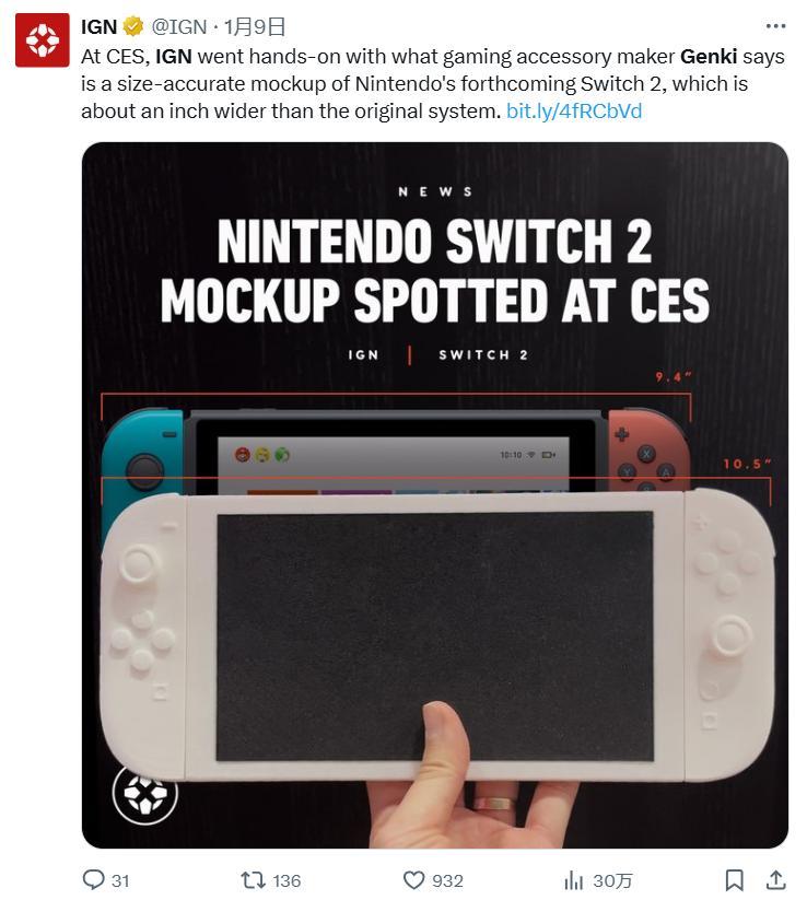 IGN在現場體驗後單獨發了視頻,對比了它和一代NS的尺寸,演示了可能有的按鍵功能。