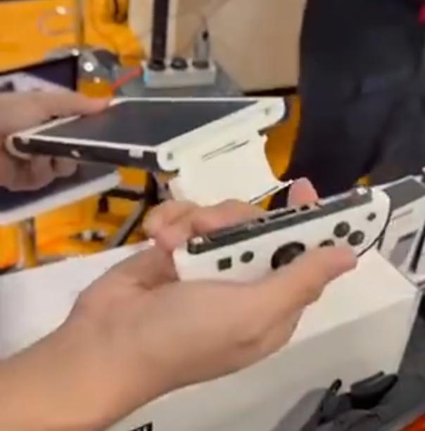 博主@NextHandheld 則放出了NS2主機、底座的實物圖,雖然圖片背景被質疑是AI生成,但機器本身的一些細節和此前的爆料對得上。