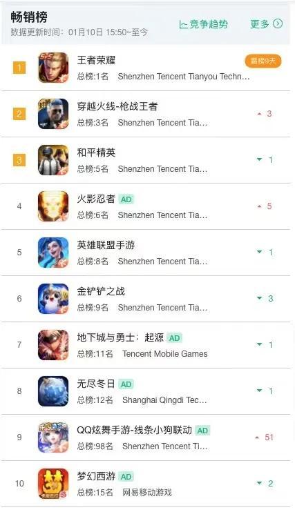 不談《王者榮耀》《和平精英》這兩款超級產品,《穿越火線-槍戰王者》《火影忍者》等上線數年的老產品,依然能有所發揮。而《英雄聯盟手遊》《金剷剷之戰》則算是近年經過沉澱後,逐漸穩佔頭部位置的案例佐證。