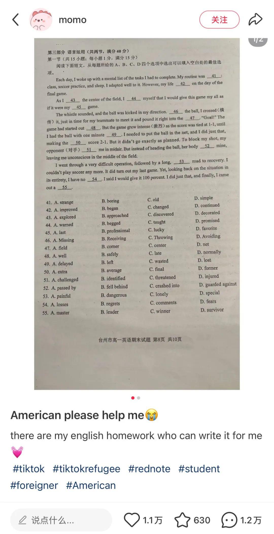 一部分學生,把TikTok難民當成英語救星,見人就扔一張習題截圖,處處尋求答案。