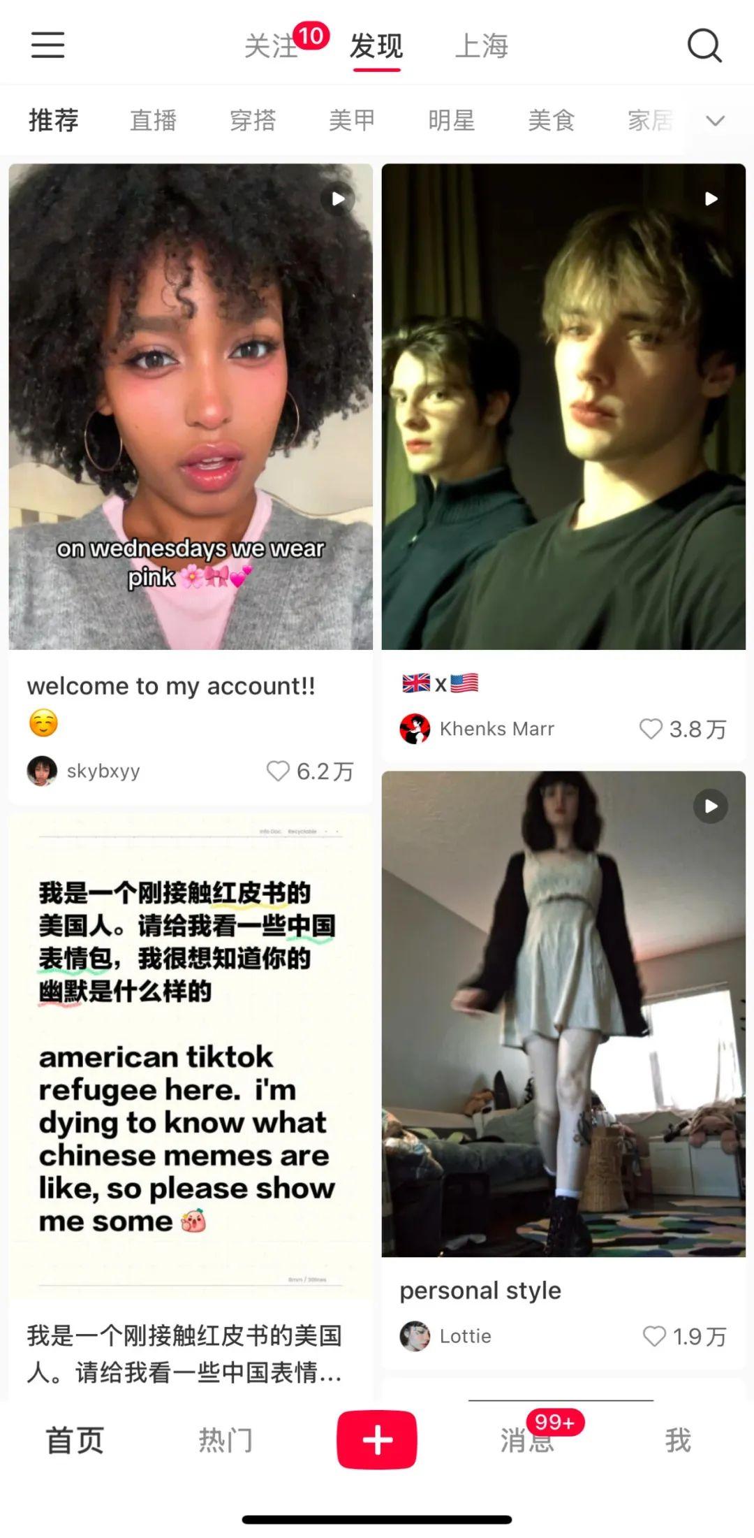 來到小紅書的外國人都稱自己爲TikTok難民,喜歡發自拍Say Hello,用中英雙語自我介紹,對一切充滿好奇。
