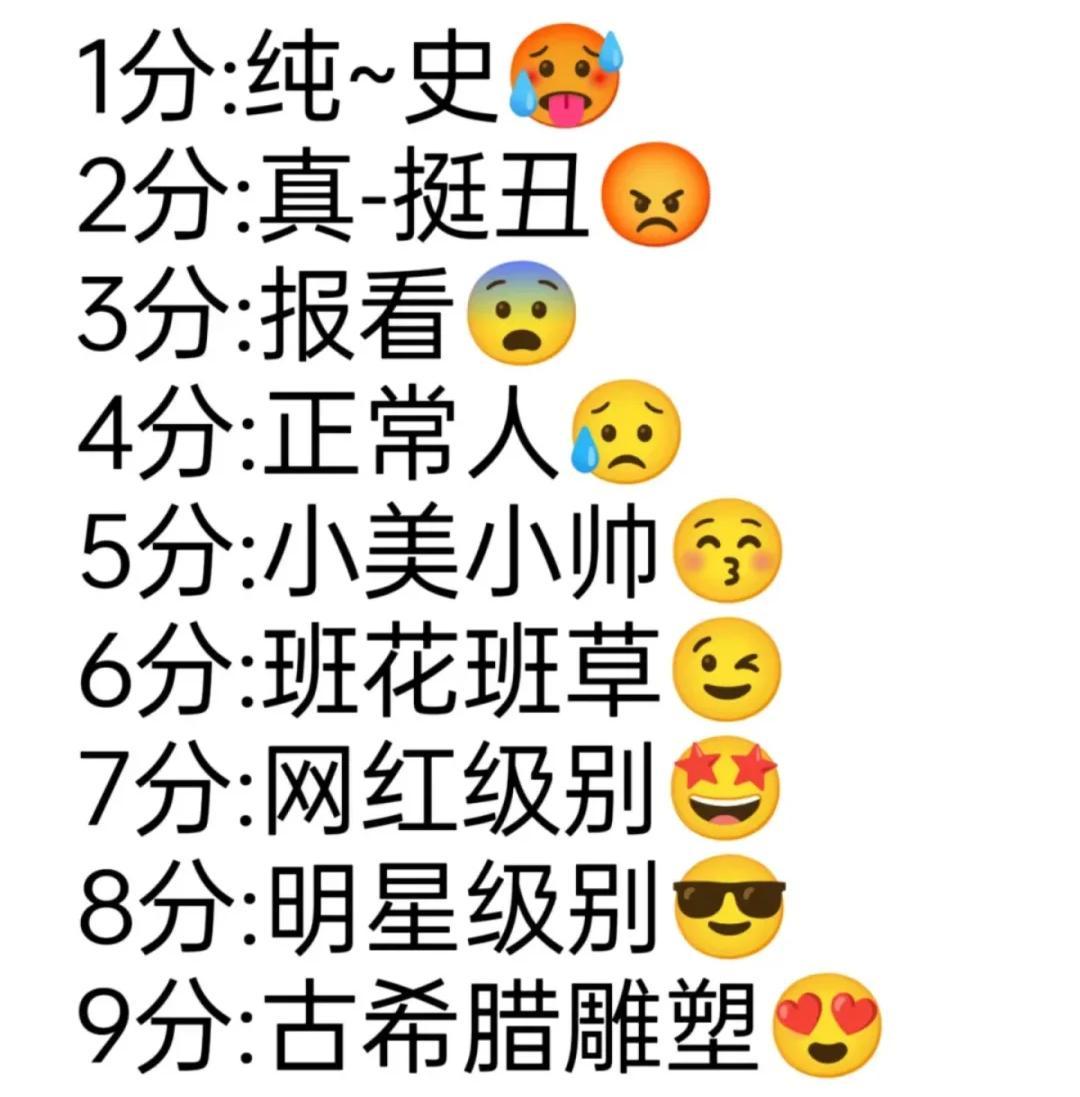 估計是店家們的敷衍之意愈發明顯,又可能大家早已被生活折磨出了斯德哥爾摩症。人們對顏值打分的需求,像脫繮的野馬一樣,逐漸朝着不可描述的方向發展……