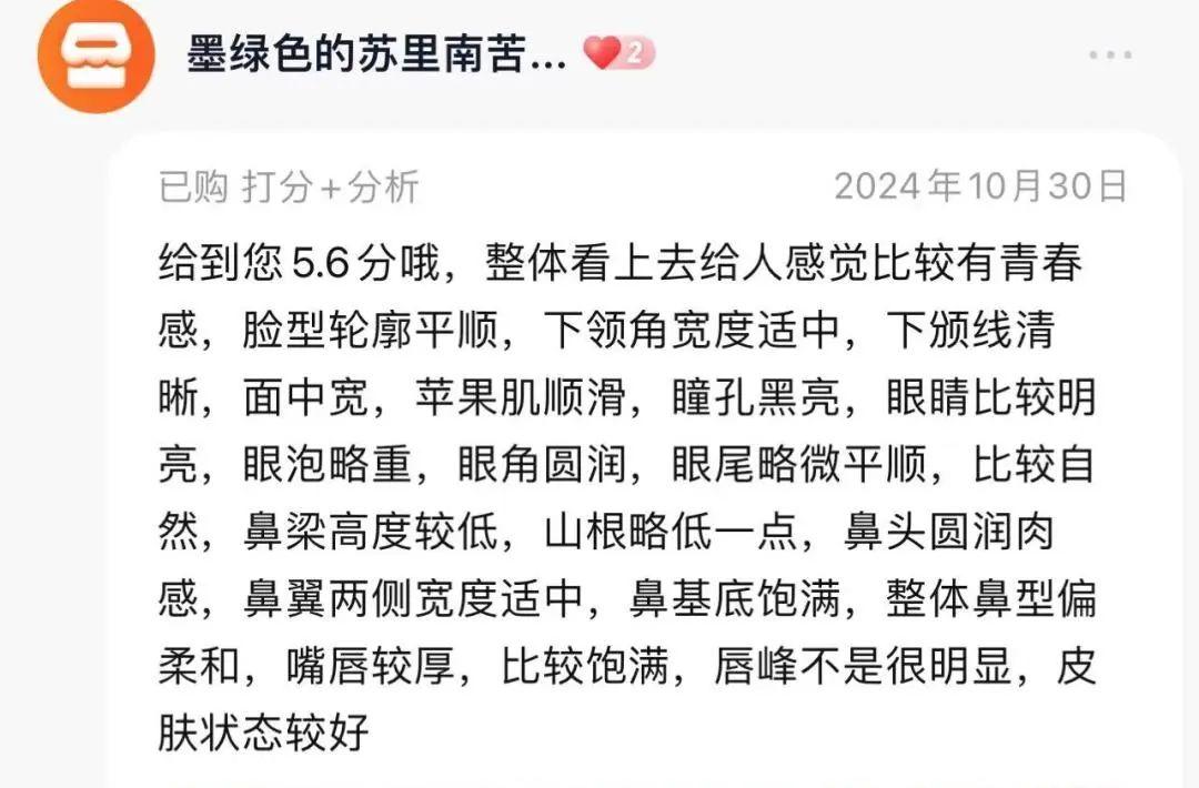 他們不僅會細緻的附上幾百字的文字評價,分析你的面部五官,從輪廓、鼻樑,說到脣形、三庭五眼,還會根據原生條件給出妝容和穿搭建議、變美攻略等“增值服務”。
