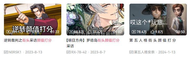 就比如2023年爆火的街頭顏值打分系列視頻。B站UP主@全網都叫於小惠,先是在路上隨機抓了一個陌生人,讓他給自己的顏值打分,然後再銳評上一個接受採訪的人。