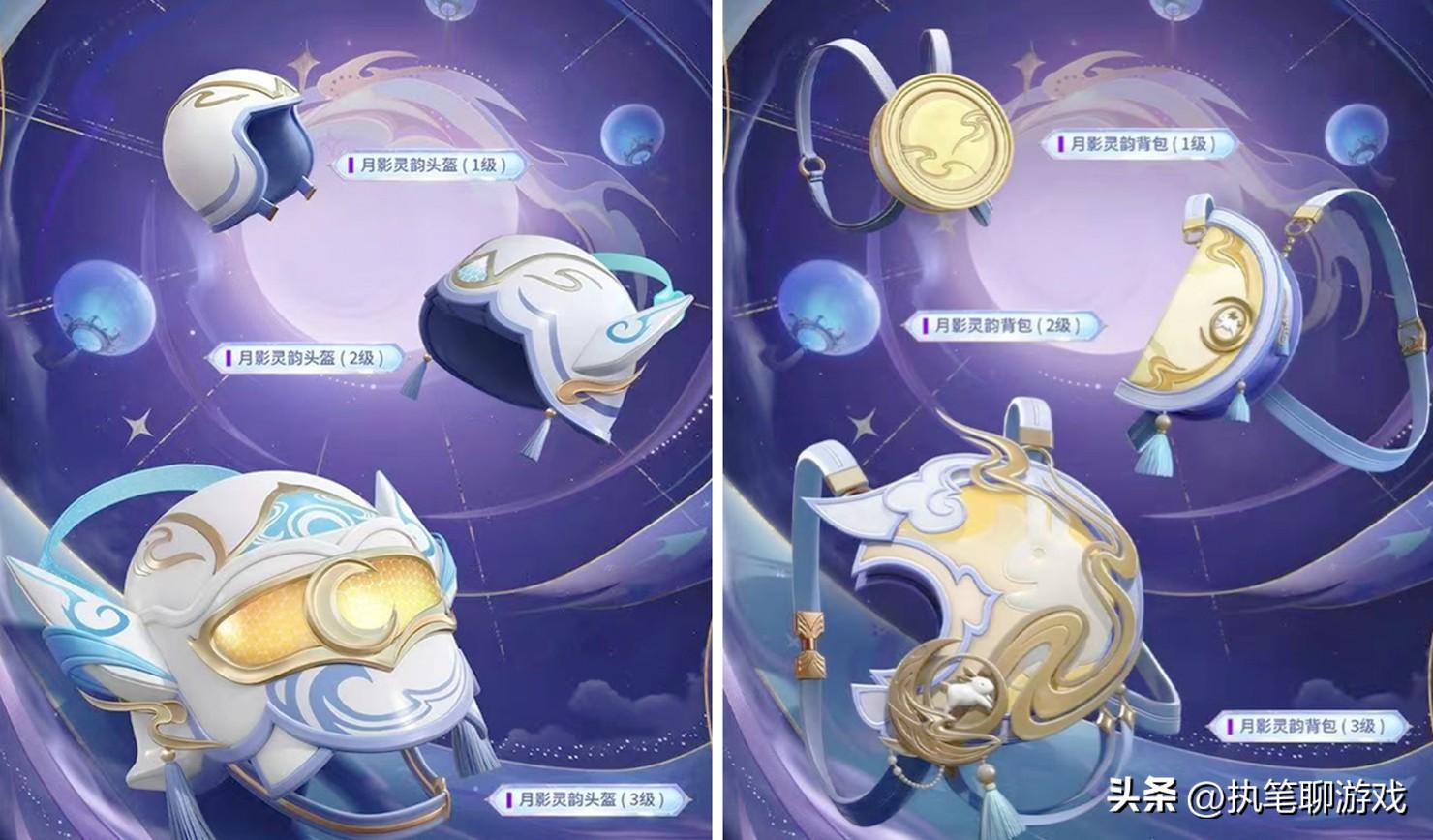 接下來登場的是頭盔、揹包,其中的頭盔實屬一般,這種造型在《和平精英》中比比皆是,沒有絲毫辨識感;反觀揹包的造型還挺新穎,圓月、半月、殘月的設計相當別緻,而且體積較小,在遊戲中頗受歡迎。