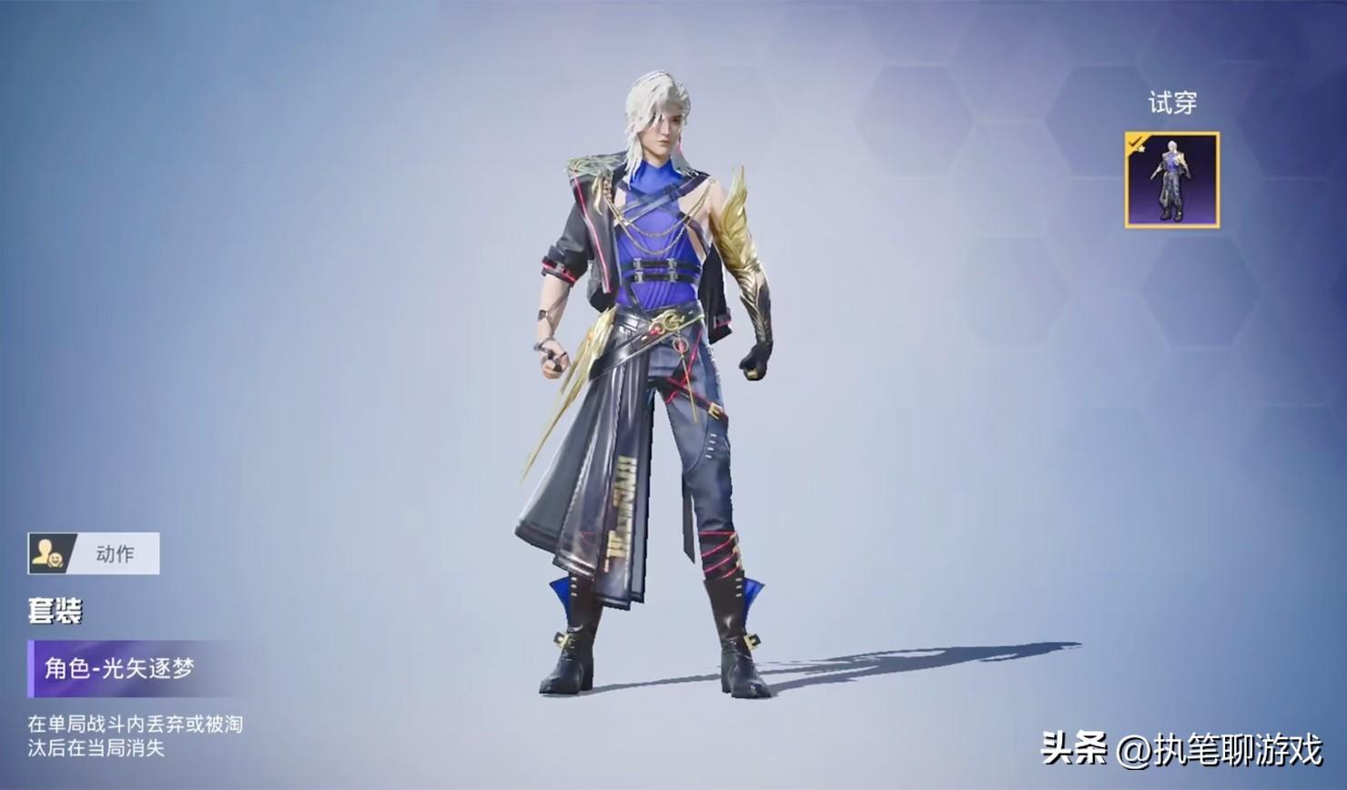 當然了,“光矢逐夢”也不是一無是處,因爲《和平精英》中的大多數角色都是以女角色爲主,男角色幾乎都是用來打醬油的,套裝倒是挺多,擁有唯一特徵的角色卻少之又少,除了紅裝之外,普通的紫色等級角色屈指可數,也算是爲男角色的玩家考慮了,聊勝於無!