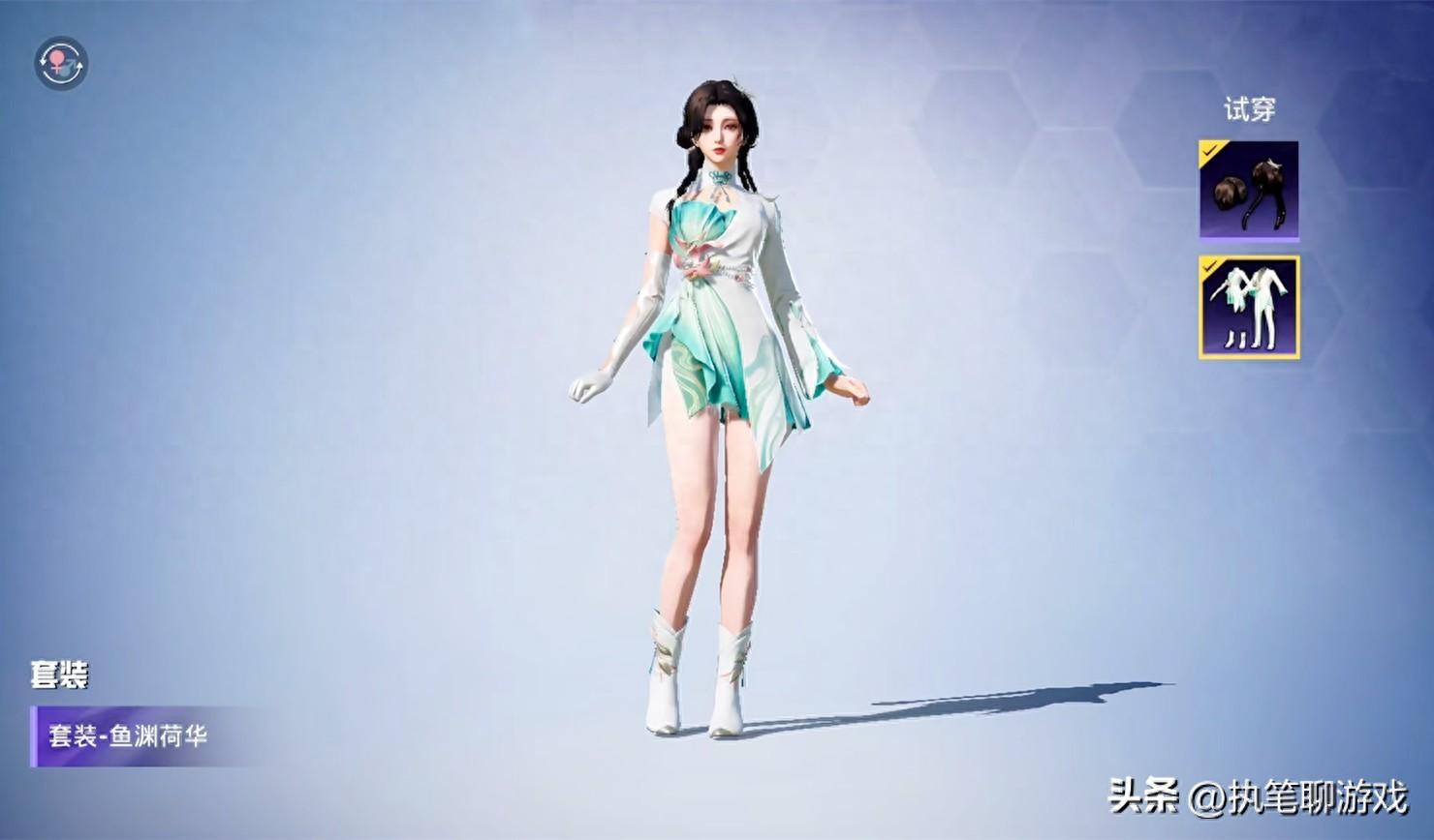 首先我們來看1級獎勵的新套裝,它的名字相當拗口,被光子命名爲“魚淵荷華”,從字面意思上來看的話,應該有魚、荷花等元素。