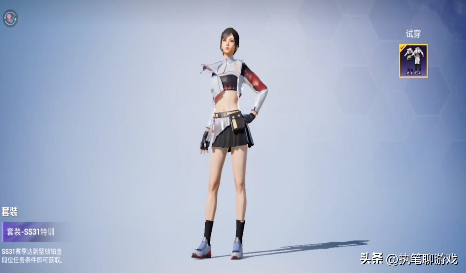 最後壓軸登場的第4套衣服是SS31特訓套裝,這都大冬天了,還整這種小裙子,也不知道光子的腦瓜子到底是怎麼想的,難道離開了裙子就不會設計皮膚不成?實在不行,還是去一脈相承的PubgM去“照搬”吧~