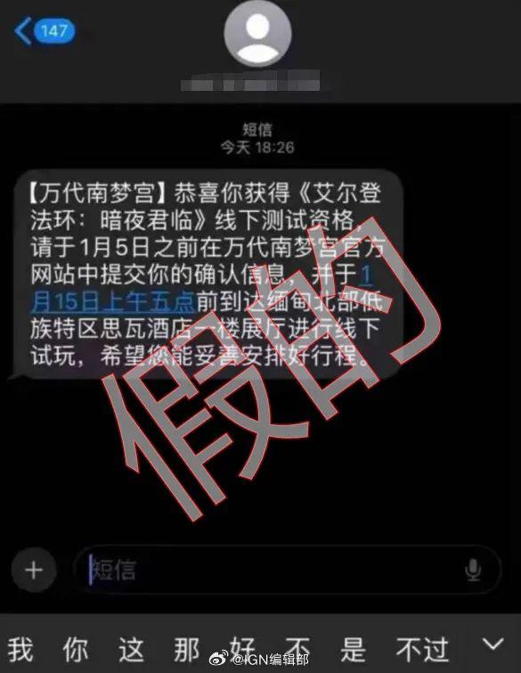 近日,因有不法團體發佈有關《艾爾登法環:黑夜君臨》線下體驗資格的信息詐騙,比如下圖……