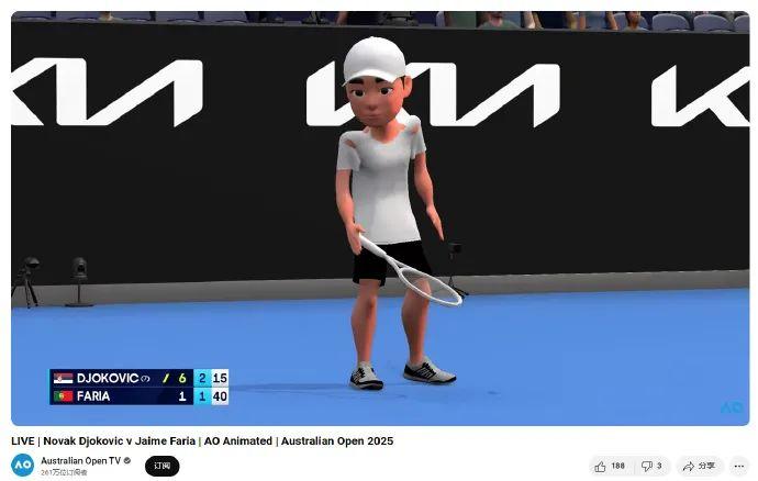Youtube上的澳網比賽直播,爲了規避版權問題,給真人運動員套上了類似任天堂《Wii Sports》裏網球角色的皮套。其他的觀衆和工作人員也加了遊戲濾鏡,莫名有種在玩網球遊戲的感覺。