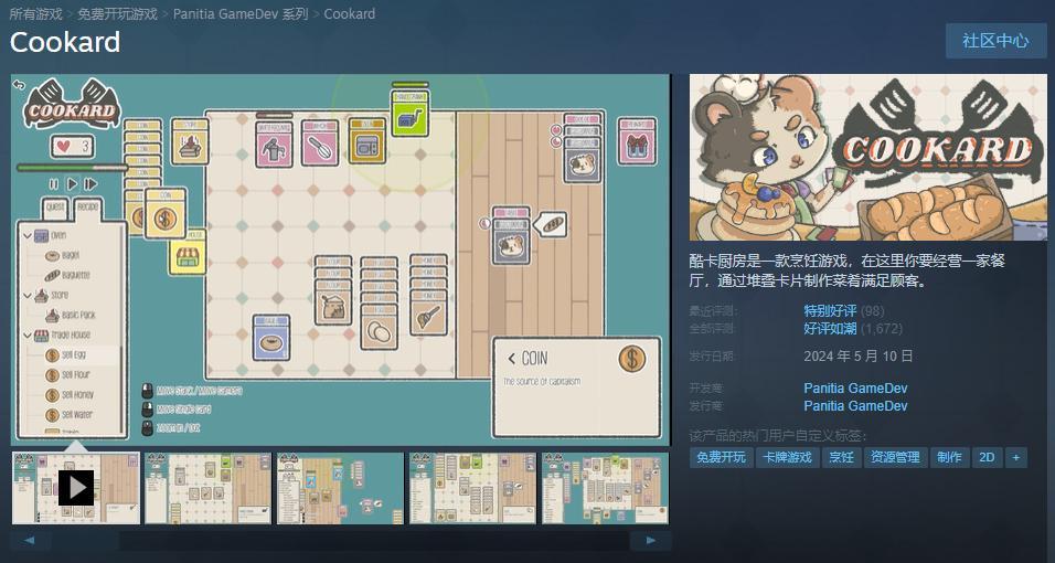 今天介紹一款卡牌烹飪遊戲,《Cookard》。在這裏你要經營一家餐廳,通過堆疊卡片製作菜餚滿足顧客。