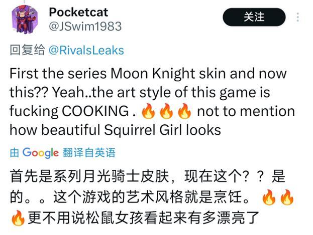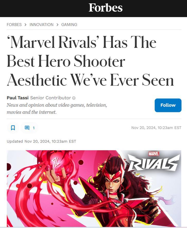 而且你知道最搞的是什麼?如果說2016年的《守望先鋒》,是美國人讓中國玩家愛上了他們的“屁股”;而2024年的《漫威爭鋒》,就是中國人讓全世界玩家愛上了中國製造的內容,用的還是歐美人自己的IP。在DEI妖魔鬼怪橫行的歐美遊戲圈,找到一款從身材比例、造型和性別都符合大衆正常審美的遊戲,已經會讓老外們感激涕零了。更何況,《漫威爭鋒》真的屬於角色審美在線的類型,男性的強壯,女性的曲線美,以及對於原作細節的精緻復刻,已經讓這遊戲的角色形象設計,成了海外玩家的焦點話題。比如非常符合歐美人XP的松鼠女,感覺已經預定了今年的3D區扛把子了......狗裏狗氣的小鯊魚Jeff,本來在漫威原作中還沒有很強的存在感,得益於《漫威爭鋒》的美術表現力,居然成了超人氣角色。《漫威爭鋒》的做法顯然是:首先讓別人喜歡上你,再試圖輸出你的文化內容。在此基礎上,遊戲試水了更多國風內容。就比如1月3日,《漫威爭鋒》上線了“青麟天將”和“御鼠龍女”兩款中國神龍主題皮膚。通過祥雲、水墨等國風元素的應用,給老外開了開中國文化的眼界。一些英雄設計,則包含了更深刻的文化內涵。比如 “鐵拳”林烈,作爲中國英雄征戰海外的代表,林烈的技能設計頗具傳統國風韻味,如“燕子三抄水”、“截拳道”、“御氣乘龍”等中國傳統武術招式。終極技能語音“氣貫長虹”,更是因爲全語音包統一使用中文,讓老外們聽到一句霸氣的中文就被創死。結果,就像《只狼》文化輸出“死”字那樣,“氣貫長虹”也成了海外各大遊戲社羣裏的爆火流行梗。所以我覺得,《漫威爭鋒》最獨特的一點在於:以往的遊戲是將中國自己的內容輸出海外,代表着中國人能做好我們自己的文化;而《漫威爭鋒》則代表了,即使是歐美人的文化,在我們手中也能做好,甚至比歐美人自己做的更好,主打一個反向文化輸出,無論什麼題材,讓我們中國文化都能佔據一席之地,形成一種超越地域限制的共同體驗。《漫威爭鋒》的遊戲體驗,是得到了全球玩家普遍好評的,遠不止那個夏天的簡單替代品,它還有很多自己獨特的東西。首先在於,其真正還原了超級英雄能力的戰鬥體驗。你會看到大部分角色能在空中翱翔,用超能力展開激烈的交火,對漫威粉絲來說,是至福的享受,你可以復刻各種經典場景的快感:美國隊長和雷神並肩作戰、黑寡婦和鷹眼重建帝國,彷彿置身於電影中。許多設計有趣的英雄,也被玩家發掘出了搞怪偏門的玩法。比如奇異博士的傳送門技能,可以將對方直接送至懸崖邊緣,或者通過巧妙放置兩個傳送門造成無限下落的效果。非常抽象,非常邪門,非常好玩。另一方面,是是遊戲裏“連攜技能”的設計。遊戲每個角色都有多種連攜技能,當隊伍裏有兩名或三名有羈絆的英雄時,他們就會激活連攜技,多出各種額外技能或被動效果。連攜技能存在的意義,除了強度以外,更重要的其實是好玩。比如當你選擇火箭浣熊,而你朋友選擇格魯特時,你就能控制浣熊騎在格魯特身上,全程讓格魯特帶着你走,你們雙方都獲得減傷,同時浣熊瘋狂開火和發射治療彈。再比如蜘蛛機甲潘妮·帕克和毒液同時出現時,潘妮·帕克會多一個共生體尖刺護甲的技能,毒液則會獲得加強。玩家不必侷限於死板的傳統配隊,而是可以盡情享受遊戲帶來的歡樂。這份純粹的樂趣,恰恰是許多主流競技遊戲嚴重缺失的。總之,從服務到內容,《漫威爭鋒》都展現出了極高的戰鬥力,與此同時仍有極高的潛力。隨着遊戲的影響力水漲船高,我們也能看到,裏面充滿中國傳統文化韻味的設計正在全球範圍內獲得認可,成爲了連接不同文化、促進文化交流的橋樑。《黑神話:悟空》和《漫威爭鋒》分別在買斷制和服務制遊戲領域,成了2024年全球遊戲圈的一發王炸。但它們的崛起絕不是個別事件,而是中國遊戲加強國際競爭力的開端。在2025年,我相信還會有更多的中國文化,湧現在不同的遊戲市場中。對於《漫威爭鋒》,我和許多玩家一樣,相當看好它的未來。遊戲迄今公佈的更新計劃,相當落地且富有誠意——預計每年會有四個賽季的更新,每個賽季都會帶來新的故事情節、英雄人物和地圖環境,平均每兩個月推出四位新角色。這種節奏足夠保障玩家的體驗新鮮感。也就在前不久,《漫威爭鋒》「第1賽季:永夜降臨」已正式上線。帶來全新地圖,並率先引入《神奇四俠》的經典角色「神奇先生」與「隱形女」。更新後,《漫威爭鋒》在Steam 平臺的熱度再創巔峯,同時在線人數突破64.4 萬人,甚至超越了去年12月6日,遊戲正式推出時的48萬人紀錄。我想,《漫威爭鋒》在意的並不是未來如何競爭,它只想做好自己,用其獨特的魅力迎接每一位渴望成爲超級英雄的玩家,以及用自己的方式,在未來向全世界傳遞更多屬於中國的故事吧。