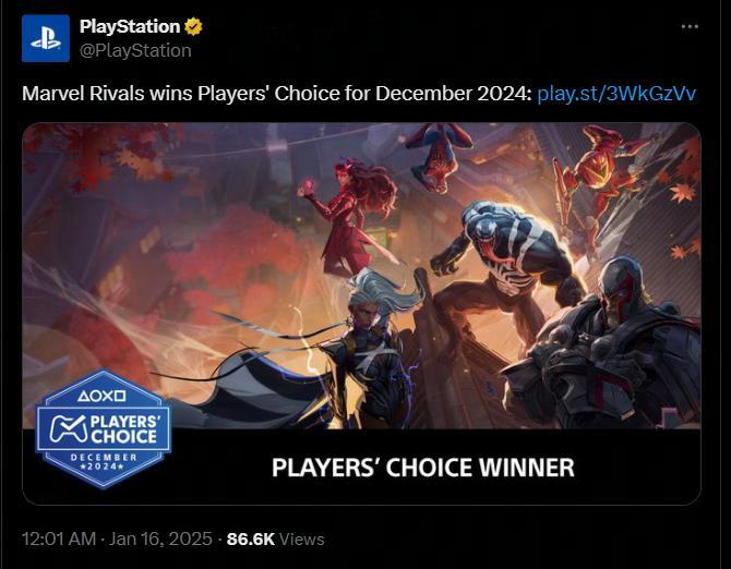如果給剛過去的2024年遊戲圈找個關鍵詞,我覺得“東昇西降”,絕對恰如其分。2024年堪稱歐美DEI遊戲的暴死元年、小丑元年和迴旋鏢元年。《星鳴特工》《無名九使》《龍騰世紀4》等大作前赴後繼褒姒,何等酣暢淋漓,未曾設想過的赤石盛宴。西降則東昇,對於我們中國玩家而言,2024卻是史無前例的、值得驕傲的一年。《黑神話悟空》頂着衆多妖魔鬼怪的打壓,橫掃了金搖桿、TGA玩家之聲、Steam年度遊戲在內的幾乎所有玩家投票獎項;海外爆火的《影之刃零》被譽爲“村裏第二個大學生”;《明末:淵虛之羽》上演“識別三日當刮目相看”的口碑逆襲......你會發現,一種前所未有的,對國產遊戲的自信心,正在一步步建立起來。我們可以非常有底氣地說:現在更多是外國玩家,需要中國遊戲來滿足他們的審美了。因爲不只是買斷制遊戲,我們的服務型遊戲也開始在海外大殺四方了。前陣子IGN也舉辦了一個年度玩家選擇獎,挑選了64款遊戲,完全由玩家一輪輪投票決出勝負——當然,依然是《黑神話悟空》無懸念拿到冠軍。但很多人沒有注意到,一路殺進決賽,最終拿到亞軍的,也是一款國產遊戲,2024年12月6日剛上線不久的《漫威爭鋒》。其實是兩款不同賽道的遊戲,同時征服了全世界玩家,一起給中國遊戲長了臉。說起來有個有趣的現象,作爲一款國產服務型遊戲,《漫威爭鋒》在海外的人氣和知名度,比在國內還要高。這遊戲在上線不到兩週內就有了2000萬玩家,現在已經接近3000萬人;它近期在Twitch上的觀看量是遊戲頻道第一,將《英雄聯盟》《GTA5》《CS2》等知名遊戲甩在身後。以及在海外玩家社區Discord上,《漫威爭鋒》已經超越《原神》成了全球熱度第一的玩家社區。考慮到《漫威爭鋒》在國內如此低調,我估計連開發商網易自己,都沒預料到它會這麼成功。